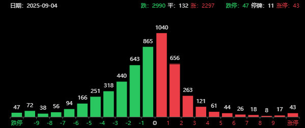 最后简单看下盘面,截至收盘,上证指数跌幅为1.25%,创业板指跌幅为4.25%,港股恒生指数跌幅为1.10%,恒生科技指数跌幅为1.75%。市场成交额放量到2.58万亿,近3000家下跌。