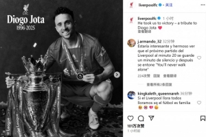 体育资讯7月4日讯 利物浦前锋若塔因车祸去世,年仅28岁。利物浦官方社媒也撰文悼念: